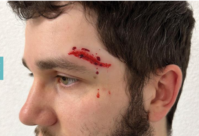 Ampumahaava n. 3×2 cm, simulaatio 5×6 cm
