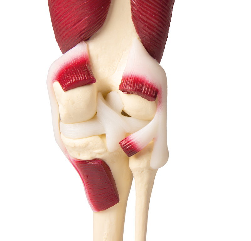 Ihmisen polvinivel, jossa on kaikki tärkeät lihakset ja nivelsiteet (kiinteät nivelsiteet, tärkeät ligamentit, patellajänne). Liitos ei ole liikuteltava.