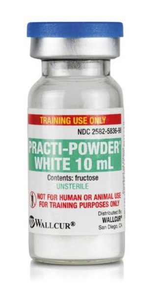 Harjoittele turvallisesti lääkkeiden käyttökuntoon saattamista realistisella simulaatiotuotteella! Practi-Powder White sisältää valkoista jauhetta, joka liukenee veteen ja simuloi useita lääkeannoksia kliinistä koulutusta varten.